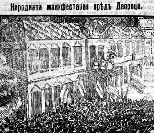 Пристигнали сетне министрите и управителят, и кметът. Той навярно с мислел сам какво ще стане. Влизат в черкова „Св. Четиридесет" и след като..., той [Фердинанд] от трона си прочете манифеста... Малинов доста развълнувано каза да се именува [князът ] „светлий цар".