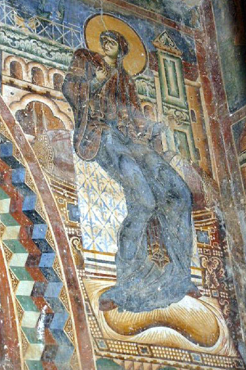 Детайл от стенопис от XII в.в църквата "Св. великомъченик Георги Победоносец" в с. Курбиново, край Преспа, дн. реп. Македония