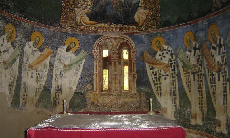 Стенопис от църквата "Св. великомъченик Георги Победоносец" в с. Курбиново, край Преспа,