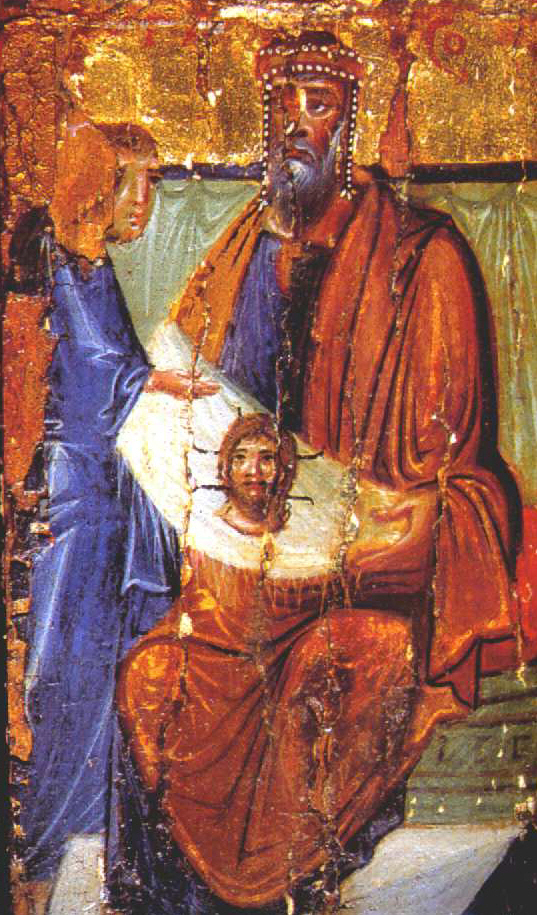 (1055-1056). Византийска миниатюра от ок. 1050 г. със слова на св. Йоан Златоуст, днес в манастира "Св. Екатерина" в Синай.